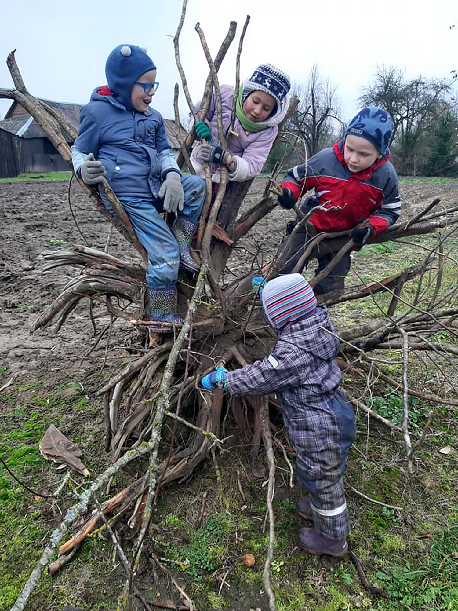 Leiskime netrukdomai žaisti lauke. Nepriklausomai nuo oro sąlygų mūsų, darželyje kasdieninė veikla lauke yra privaloma. Tai stiprina vaikų sveikatą ir palankiai veikia fizinį bei emocinį ugdymą. Laisvieji žaidimai natūralioje aplinkoje sukuria tinkamas sąlygas įvairiapusiam vaikų judėjimui, stambiosios motorikos vystymuisi. Manome, jog ikimokyklinio amžiaus vaikams kur kas geriau stambiąją motoriką ugdyti kopiant į kalniuką ar einant per rąstą nei darant mankštos pratimus virtualioje treniruotėje.