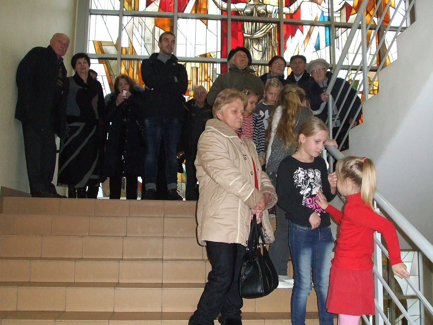 Meras perdavė kultūros ministro Š. Biručio sveikinimus ir linkėjimus. Ministras, likus 15 minučių iki salės atidarymo, paskambino ir atsiprašė nespėsiąs atvykti, nes dalyvauja paskutiniame šios Vyriausybės posėdyje.