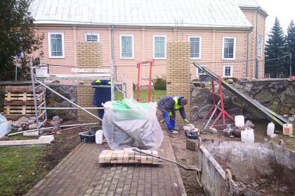 Deltuvoje remontuojami šventoriaus tvoros vartai