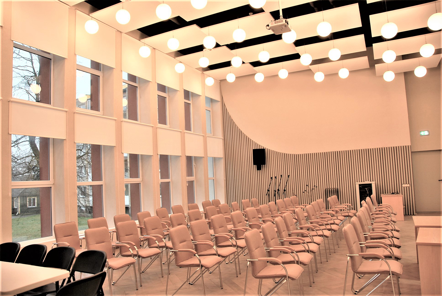 Nebeliko sovietmetį menančios salės apdailos, scenos, kėdžių, apšvietimo. Viskas dabar nauja, stilinga, dizainerių suderinta. Sumontuota ir renginiams reikiama įranga.