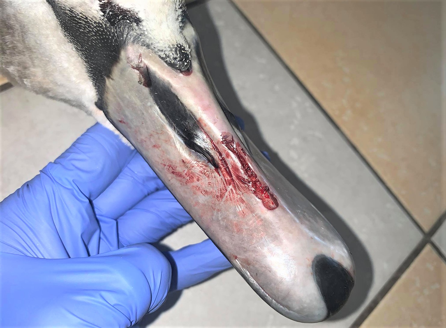 Paukštį apžiūrėjusi veterinarijos gydytoja Izolda Žemaitė konstatavo klinikinę mirtį dėl kaklo slankstelių lūžių. Nustatyti du aiškūs lūžiai. Gulbės jauniklis svėrė 10 kilogramų. Kaip informavo gydyklos „Deltuvos veterinarija“ gydytoja, surasto paukščio kūnas dar buvo šiltas, tačiau gulbė nebekvėpavo ir nebeplakė jos širdis. Kūnas buvo paralyžiuotas, o galvoje ir snapo srityje matėsi daugybinių kirtimų žaizdų.