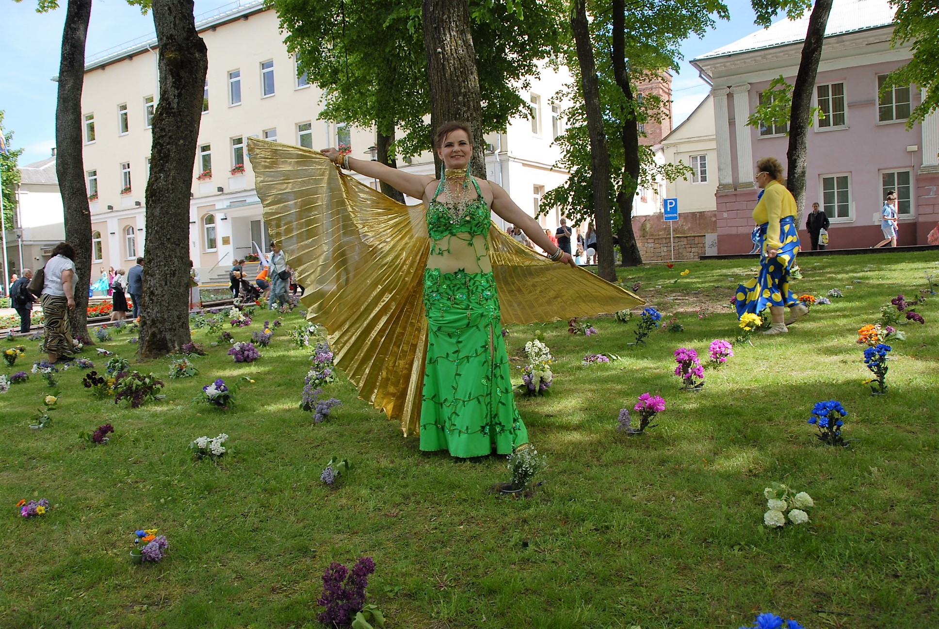 Eitynių dalyviai nešė gėlių puokšteles. Miesto centre jomis vėliau papuošta centrinės aikštės veja, virtusi svajonių pieva. Būtent tokia šių metų šventės tema – „Ukmergė – svajonių miestas“.
