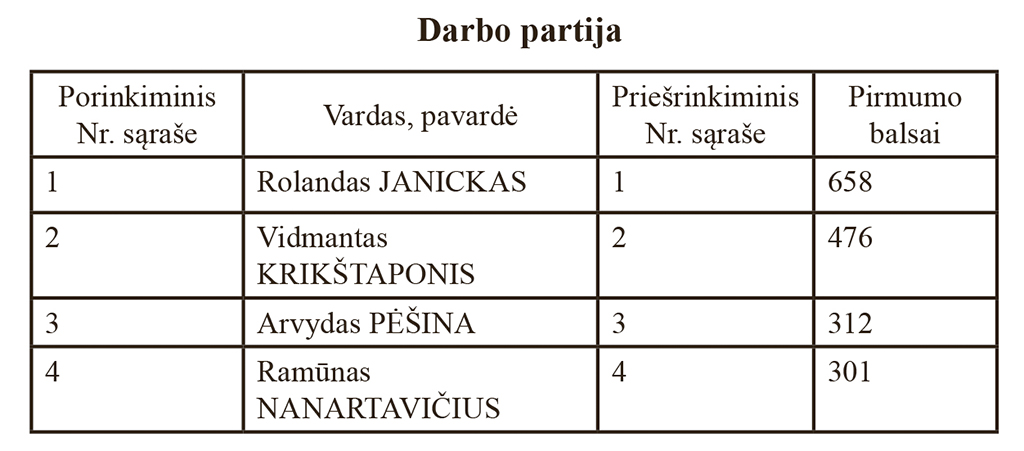 Lietuvos socialdemokratų partija sulaukė 10,45 proc. rajono gyventojų palaikymo ir turės 3 vietas taryboje vietoje buvusių 4-ių.
