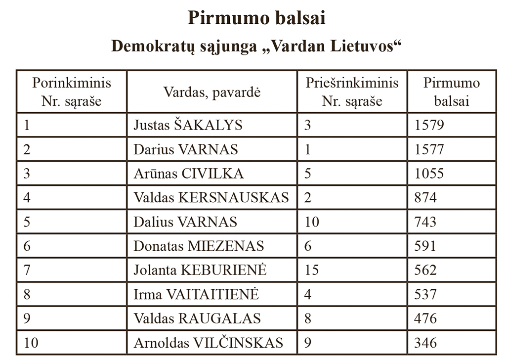 Darbo partija, sulaukusi 16,68 proc. rinkėjų palaikymo, turėjo 5 vietas. Lietuvos valstiečių ir žaliųjų sąjunga su 15,1 proc. palaikymu – 4 vietas. Tiek pat vietų turėjo Lietuvos socialdemokratų partija, sulaukusi 11,77 proc. palaikymo.