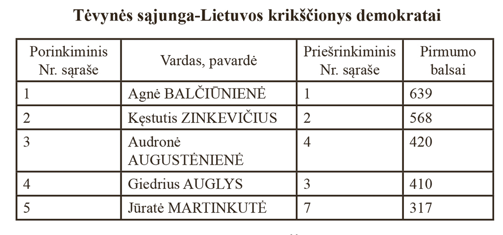 Tėvynės sąjungos-Lietuvos krikščionių demokratų partija sulaukė 15,6 proc. ukmergiškių palaikymo ir rajono taryboje iškovojo 5 mandatus (vieną prarado).