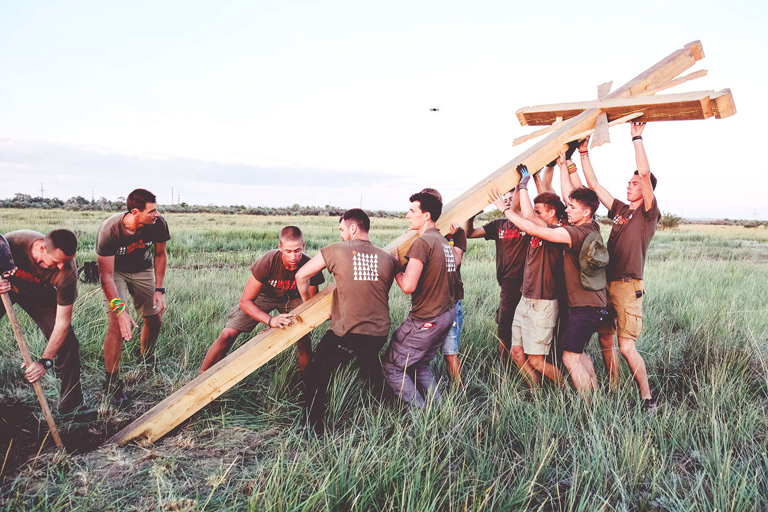 2 nuotr. Saranėje keliamas aukščiausias šios ekspedicijos – 4,8 metro aukščio – kryžius prie dviejų lietuvių partizanų kapų.