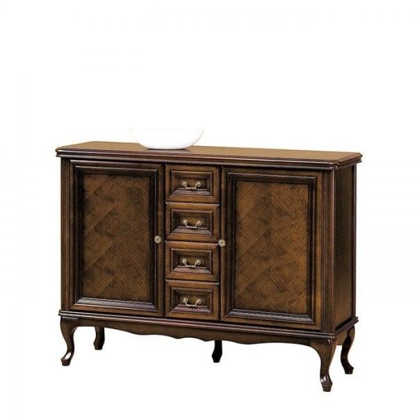 - siauresnės ir žemesnės komodos, kurios vizualiai neužgožia sienos;