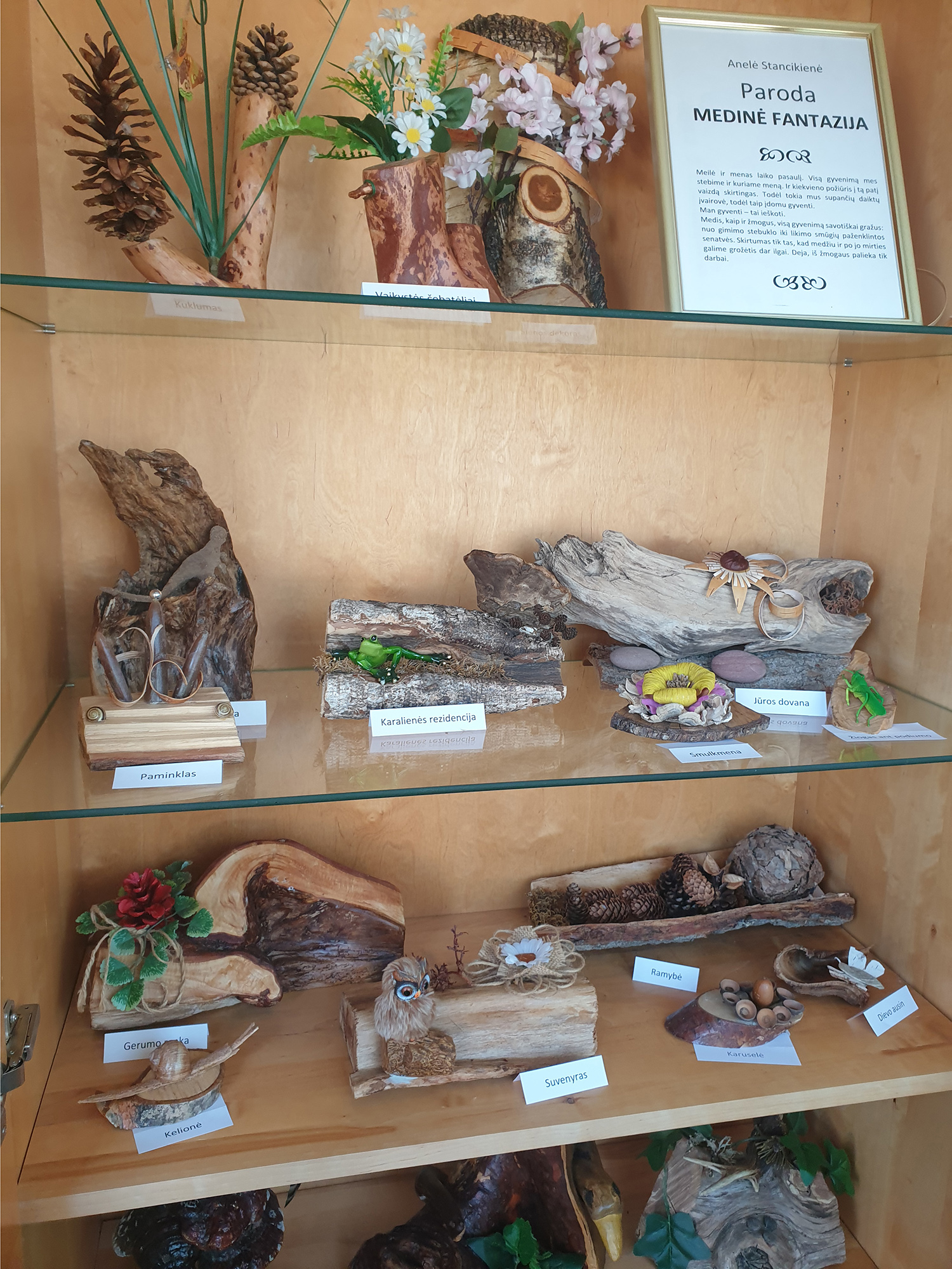 Santuokos 40-mečio proga Anelei kilo mintis gražiausioje sodybos vietoje, priešais namą, pasistatyti akmens-metalo kūrinį – paminklą jaunystei. Vyras Jonas projektą suprato ir tapo darbų vykdytoju. Vėliau savo sodybą sutuoktiniai papuošė dar pusšimčiu įvairių kūrinių. „Posūkyje į Rečionis ir savo gatvės sankryžoje pastatėme po akmeninę gėlę, kad jos čia kiek-vieną sutiktų ir palydėtų. Gimė ir smulkesnių medžio-floristikos darbų kolekcija pavadinimu „Medinė fantazija“, kuri patalpinta verandoje“, – pasakojo pašnekovė.