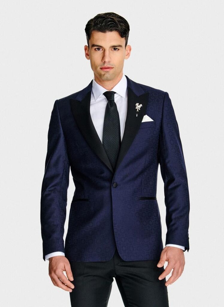 Tamsiai mėlynas žakardinis smokingo švarkas