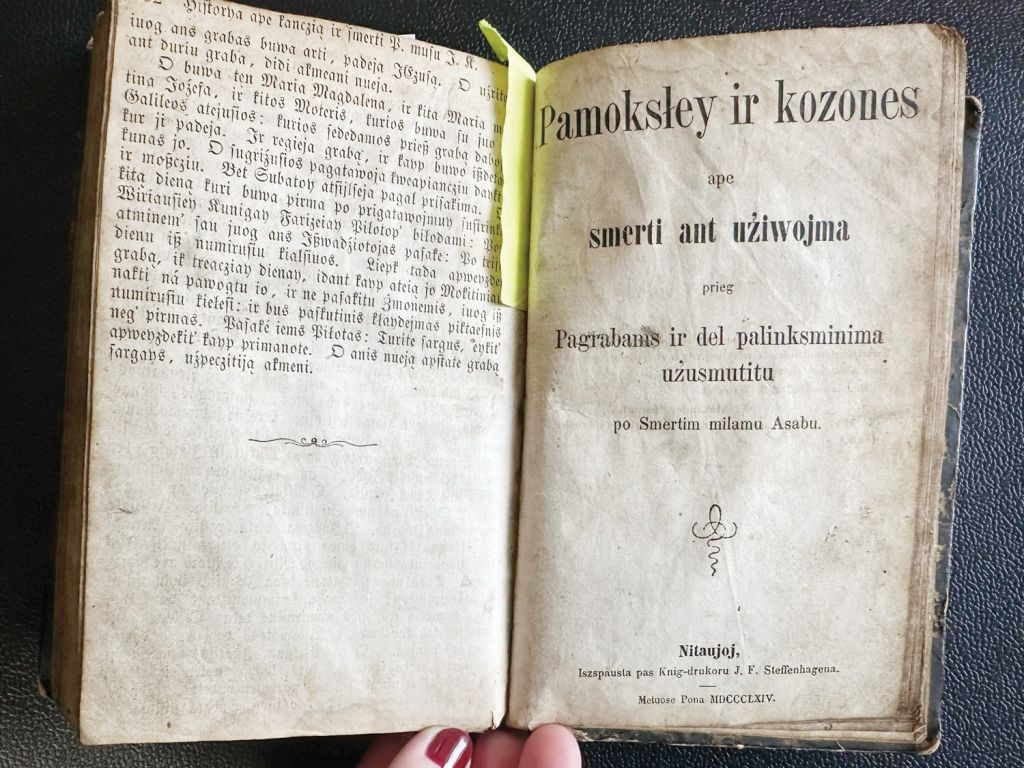 Gotikinis šriftas Lietuvoje naudotas iki XVIII a., o Mažojoje Lietuvoje – net iki XX a. pirmos pusės. Jis atėjo iš vokiečių per Mažąją Lietuvą. Kalbininkė parodė įdomų eksponatą – knygą, kuri išleista spaudos draudimo metais Jelgavoje. Pusė jos atspausdinta gotikiniu, kita pusė – lotynišku šriftu.