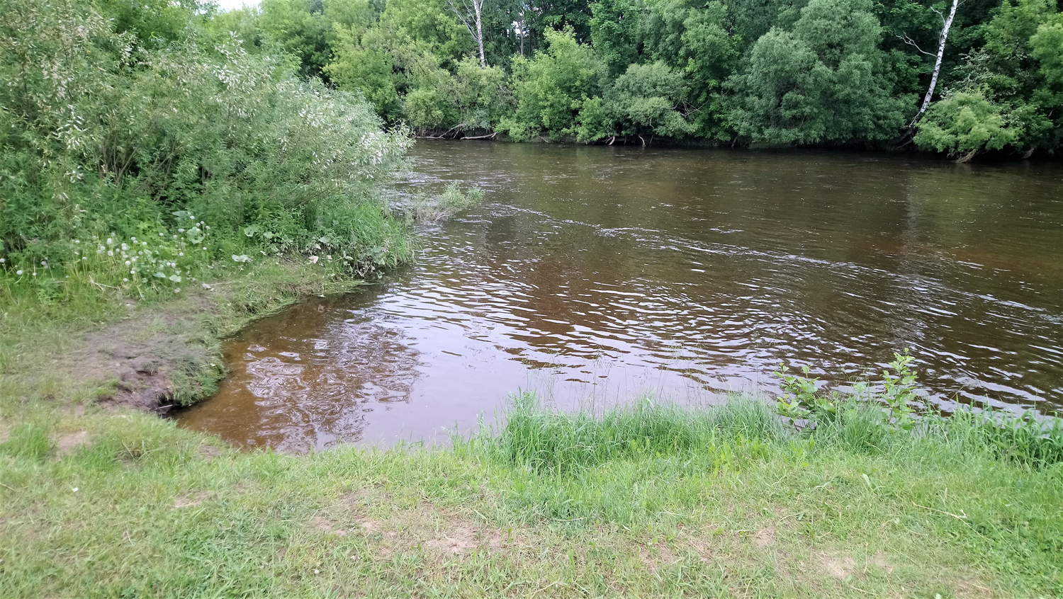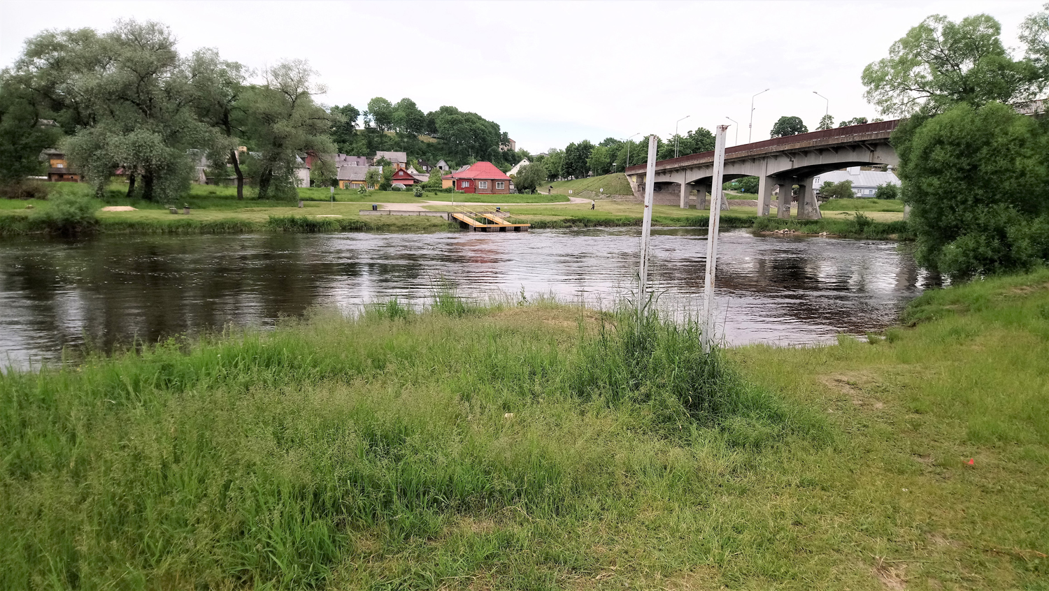 Maudymosi vieta prie pėsčiųjų tilto kiek labiau sutvarkyta – nušienauta. Tačiau ir čia trūksta smėlio, kuriuo galėtų žaisti vaikai.