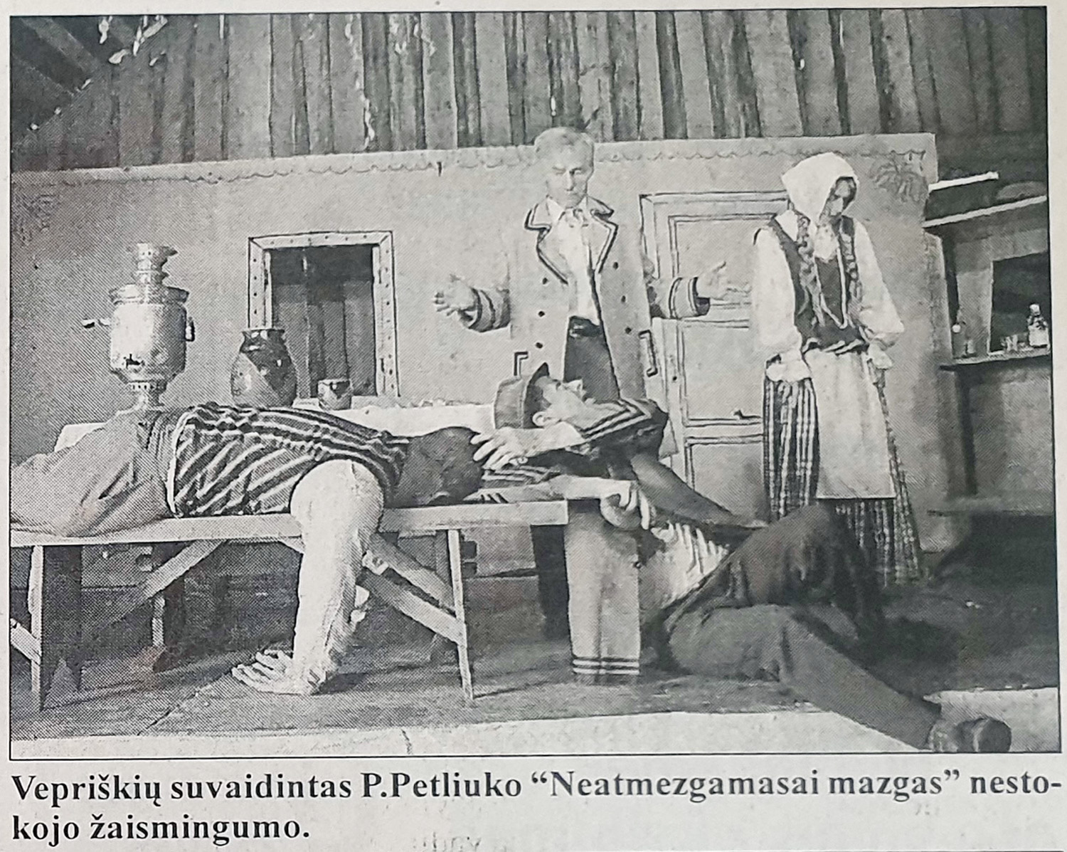 Vienais metais radome pjesę „Tėvas jau leido“ be autoriaus. Mes ją pervadinome „Mama jau leido“, nes trūko vyrų. Vaidinome, taip ir nežinodami autoriaus.