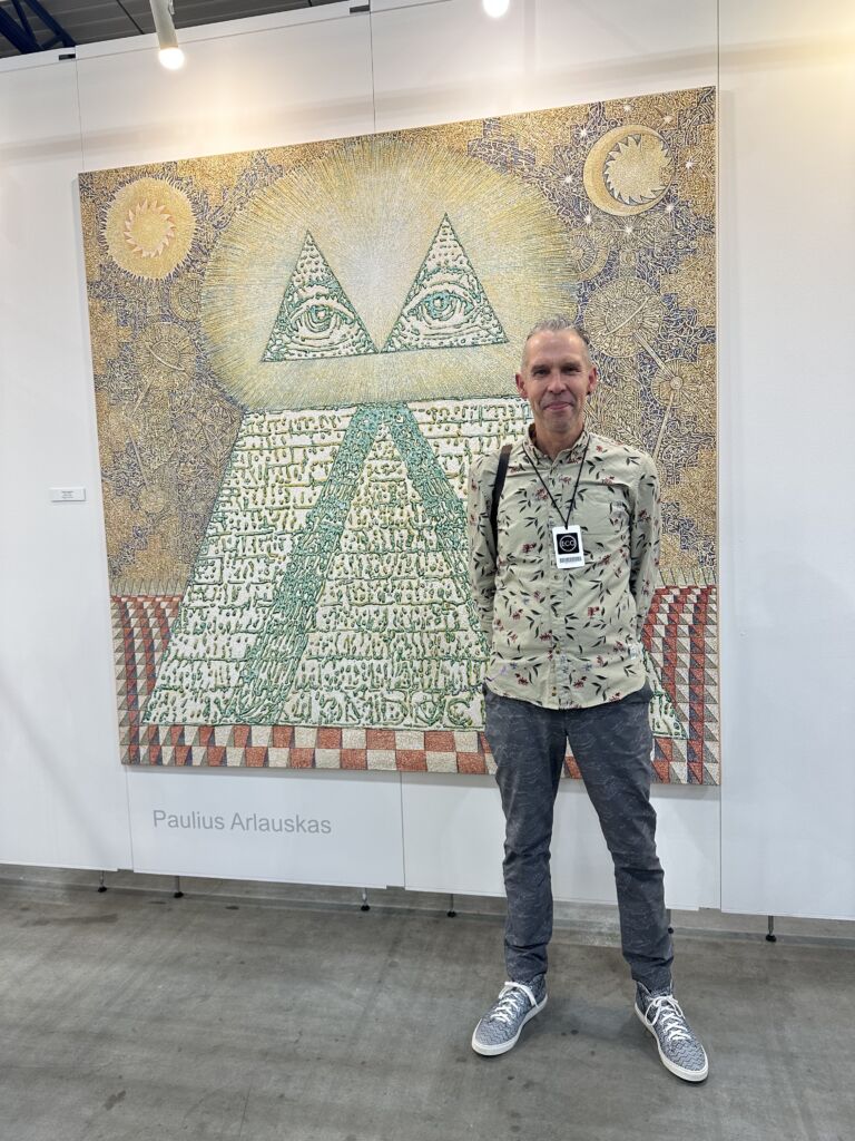 Tarpdisciplininis menininkas, koliažų ir performansų kūrėjas Česlovas Lukenskas pristatė kai kuriuos savo žymiosios serijos „Žvaigždės“ bei kitus mišria technika kurtus koliažus. Viena jo „Žvaigždė“ iš mugės iškeliavo į kaimyninę Lenkiją.
