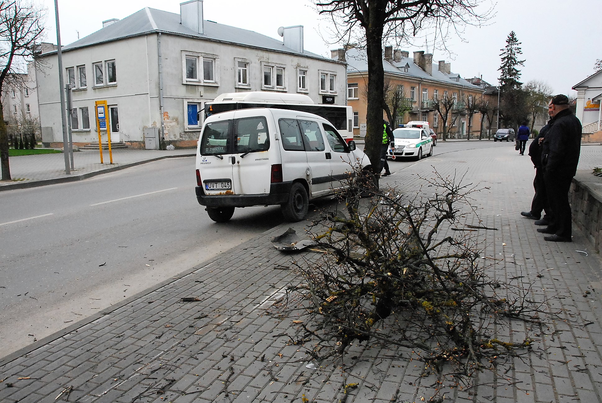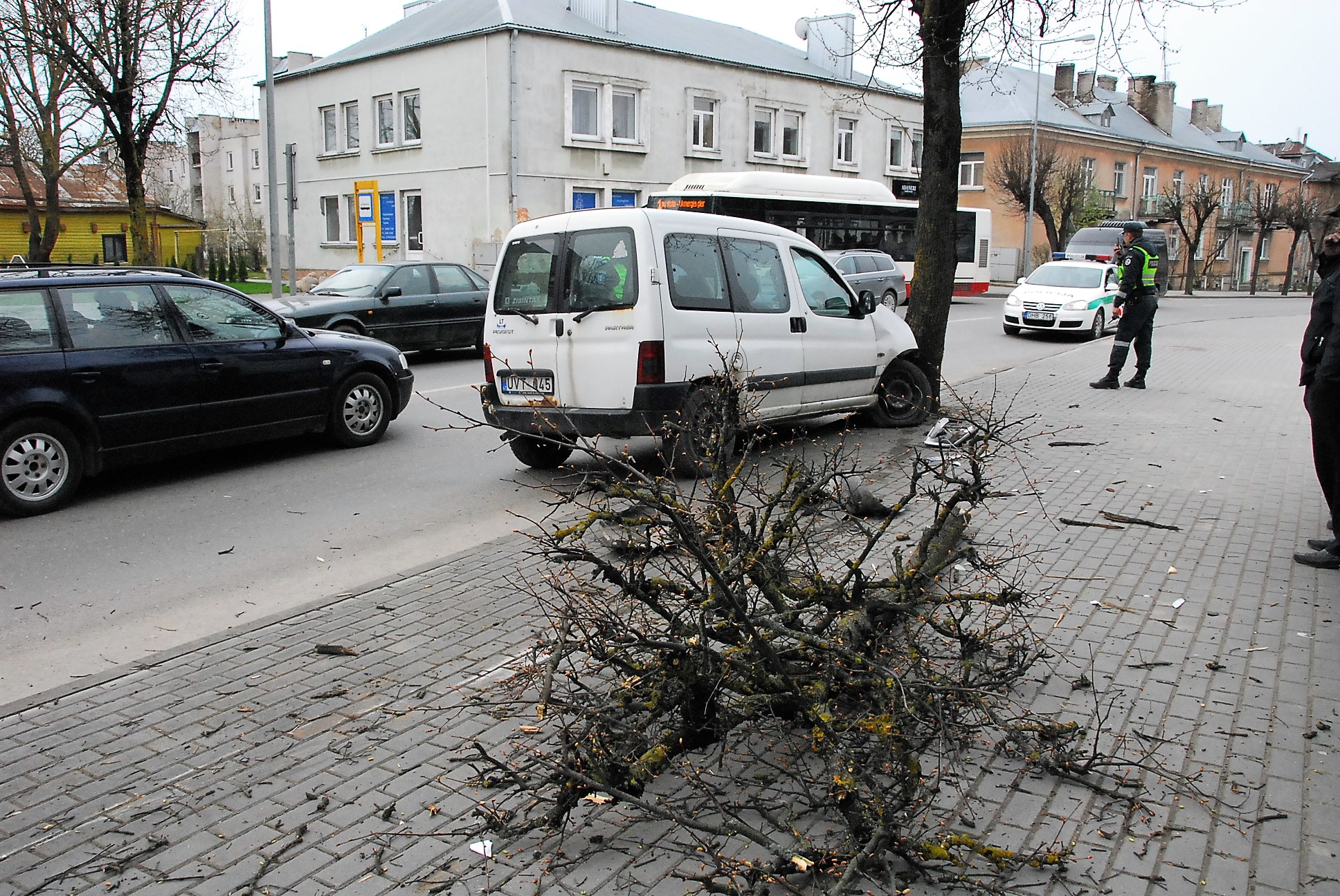 Penktadienį, balandžio 28 d., apie 10.15 val. vairuotoja nesuvaldė automobilio „Peugeot Partner“ ir, Vytauto gatvėje nulaužusi vieną medį, į kitą atsitrenkė.