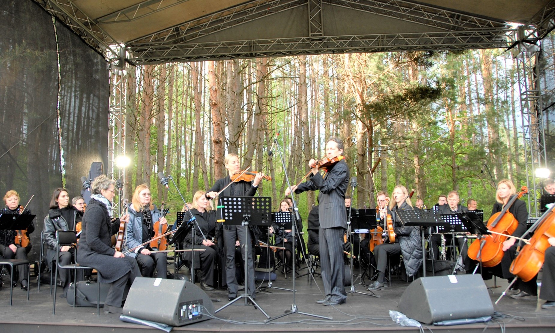 Tačiau koreguoti koncerto, penktadienį surengto A. Svarinsko parke Kadrėnuose, vietos nebuvo jokių galimybių. Nes miškas tai – ašis, apie kurią sukosi visas sumanymas – būtent miške klausytojams surengti M. K. Čiurlionio simfoninės poemos „Miške“ pristatymą. Lyjant lietui, ją atliko Šiaulių kamerinis orkestras „Camerata Solaris“.