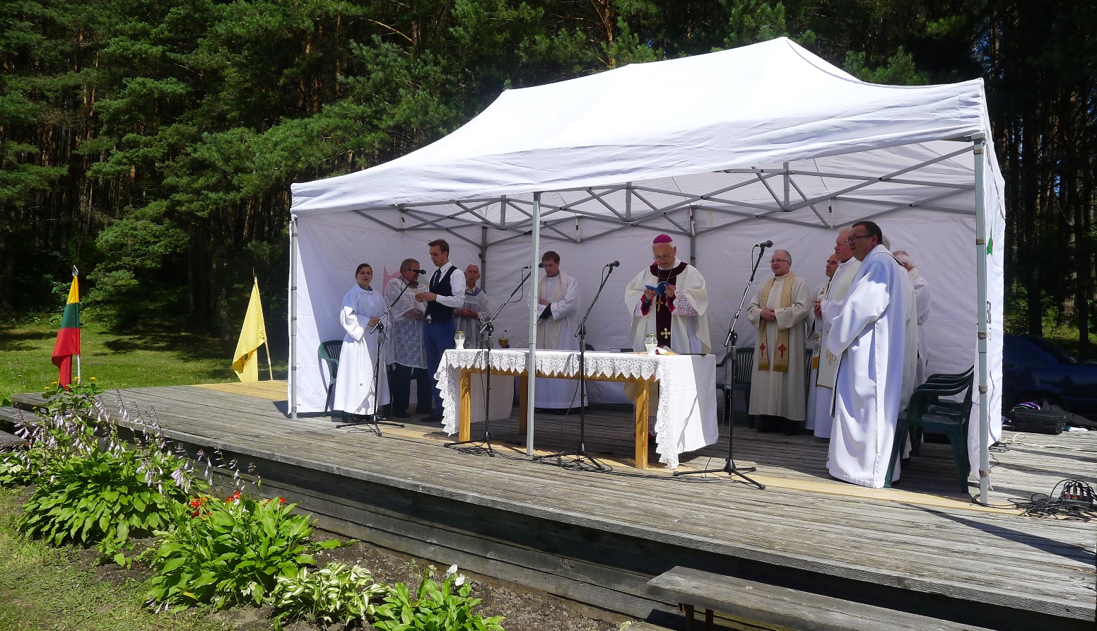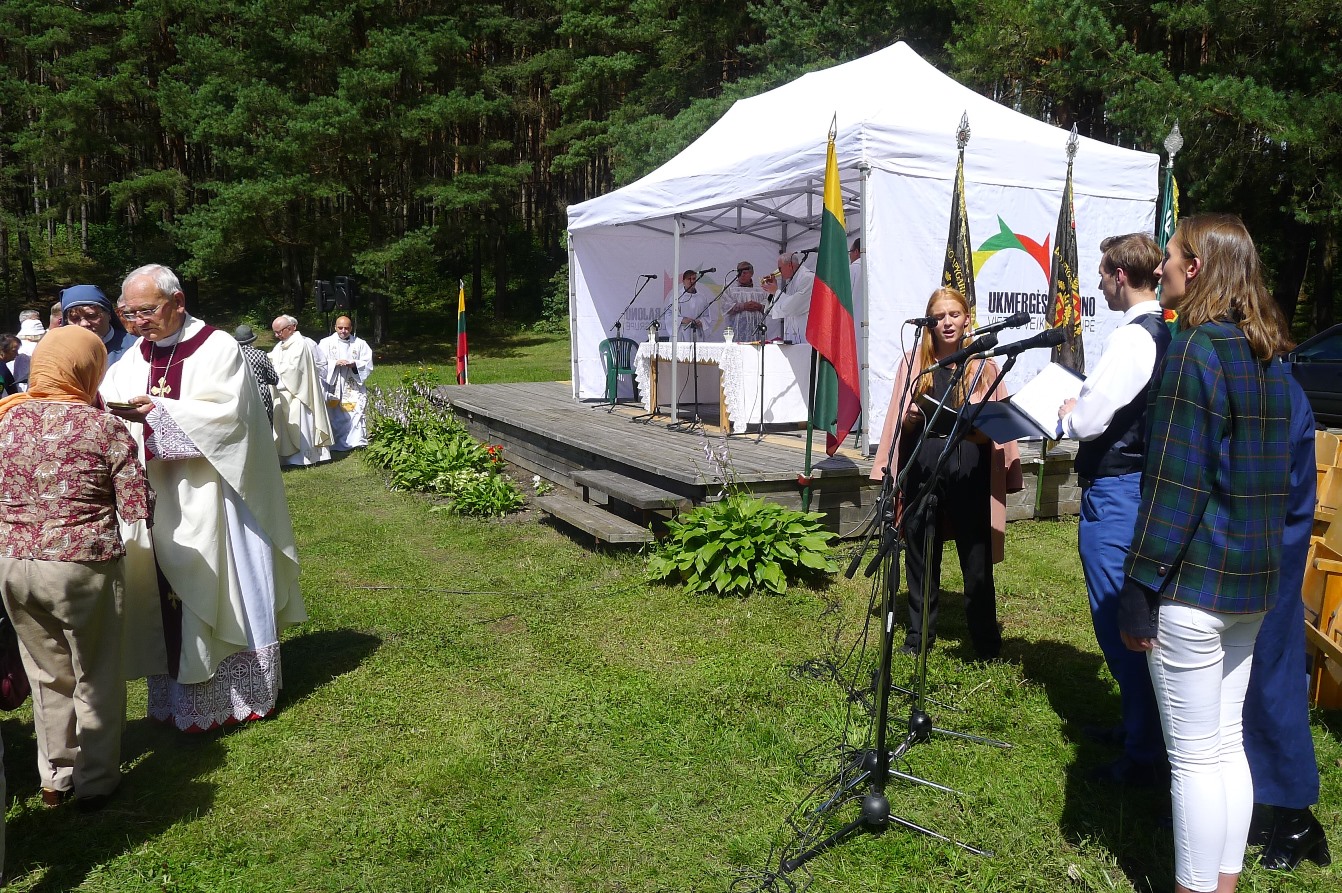 Po atviru dangumi buvo aukojamos Šv. Mišios už Lietuvos laisvės kovotojus. Skambėjo giesmės ir patriotinės dainos.