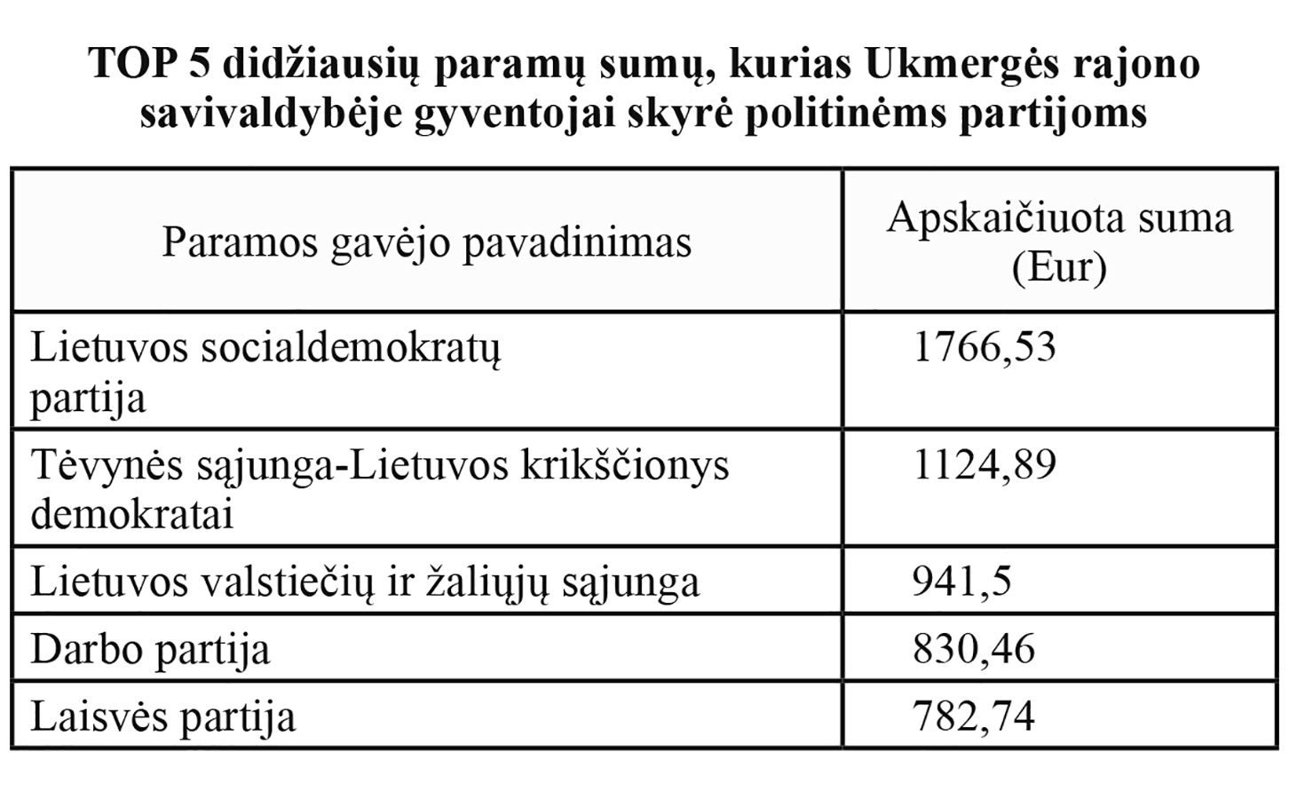 Valstybinės mokesčių inspekcijos duomenimis, šiais metais 263 Ukmergės rajono savivaldybėje registruotiems paramos gavėjams pervesta beveik 178 tūkst. eurų gyventojų pajamų mokesčio (GPM) paramai. Apie 3,2 tūkst. eurų skirta Ukmergės rajone registruotoms profesinėms sąjungoms. Daugiau nei 300 Ukmergės r. gyventojų politinėms partijoms skyrė 6,8 tūkst. eurų GPM.