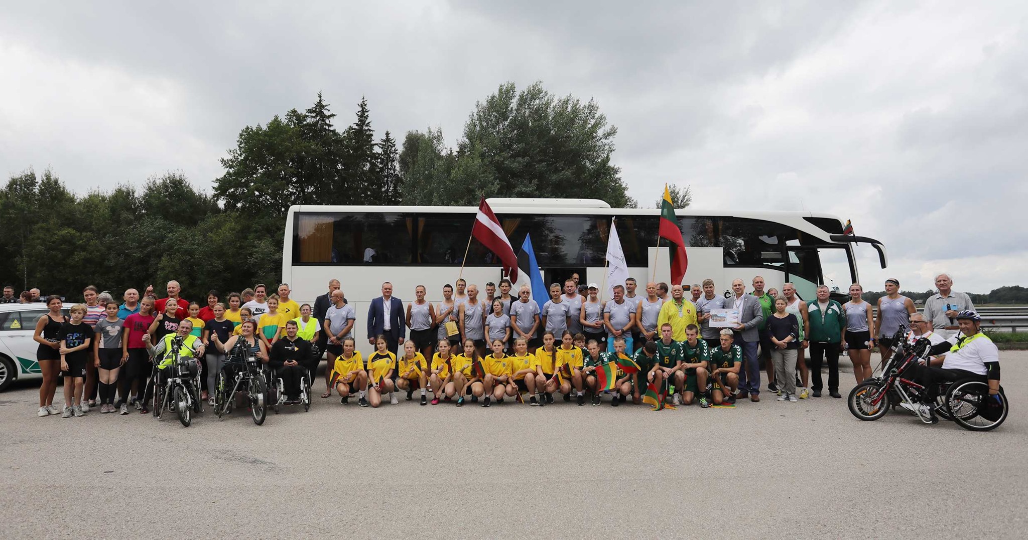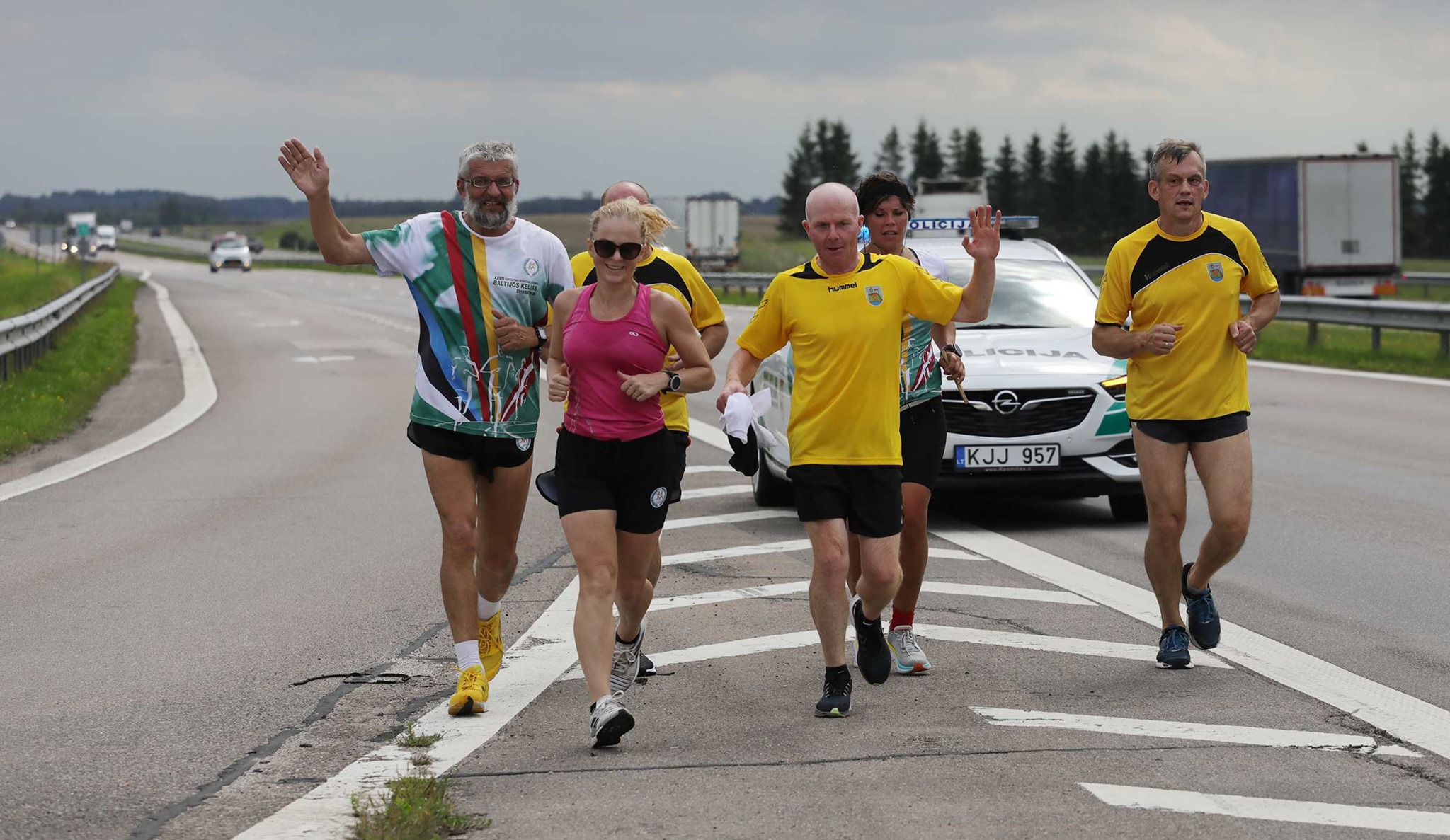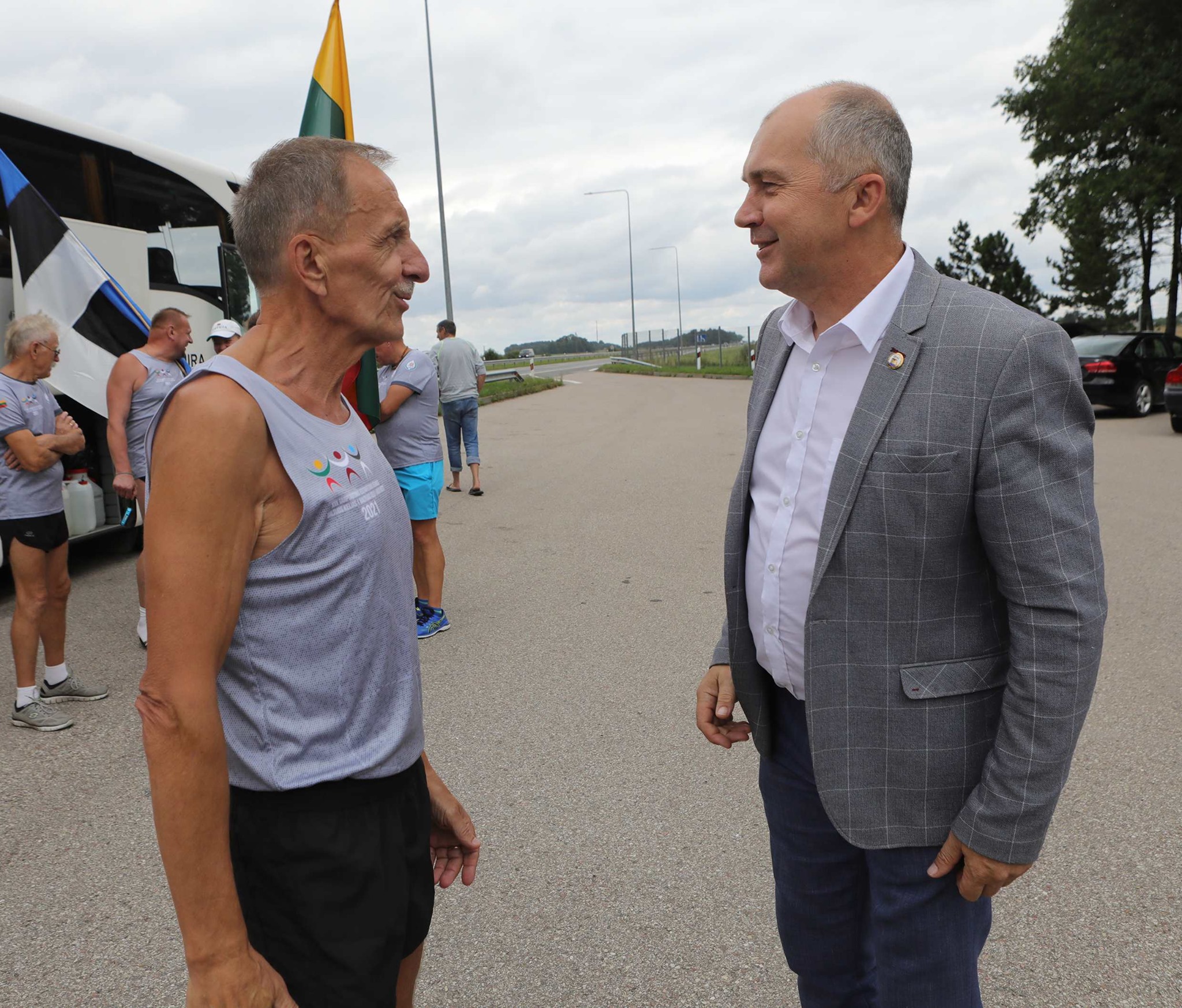 Startavę Vilniuje, bėgikai pasitikti šalia Ukmergės rajono ribos, ties Krikštėnais. Čia juos pasveikino ir į trijų dienų kelią per tris Baltijos valstybes palydėjo Ukmergės rajono meras Rolandas Janickas, administracijos direktorius Darius Varnas, Ukmergės sporto centro direktorius Vitalijus Martikonis, šio centro metodininkas-organizatorius Rimantas Lenartavičius.