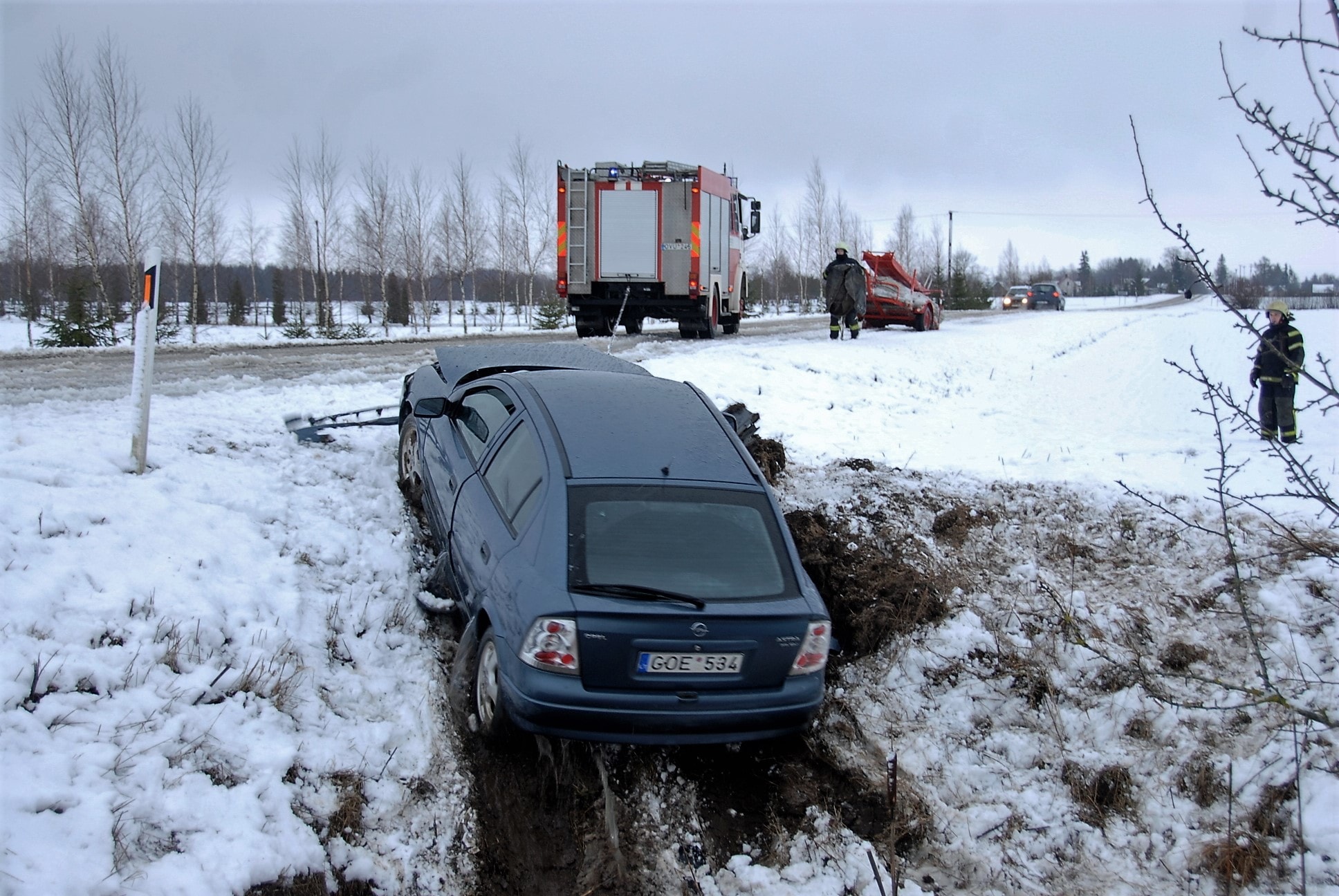 Apie 8 val. ryto netoli Jurginų kaimo nuo kelio nuskriejo „Opel Astra“ markės automobilis. Mašina įlėkė tiesiai į vandens pilną melioracijos griovį.