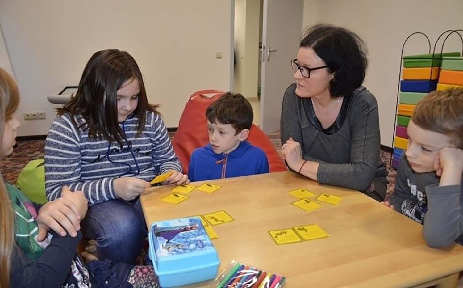 Viešosios bibliotekos Vaikų literatūros skyriaus saviraiškos būrelio „Keberiokšt“ nariai žiūrėjo vaizdo klipą, kuris moko mažuosius būti budriems ir atsargiems žaidžiant kompiuterinius žaidimus.
