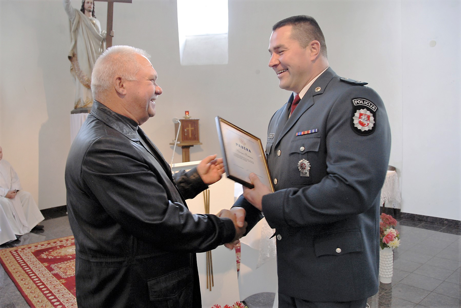Po šv. Mišių bažnyčioje pareigūnai buvo pasveikinti ir apdovanoti. Jiems Vilniaus apskrities vyriausiojo policijos komisariato viršininko įsakymu suteiktus apdovanojimus įteikė laikinai rajono policijos komisariato vadovo pareigas einanti Inga Malinauskienė.