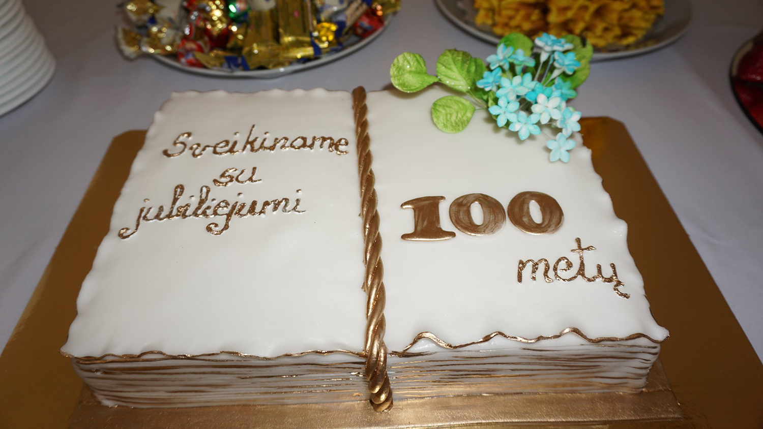 Savivaldybės atstovai įspūdingos šventės proga A. Lapkai įteikė gėlių, sveikinimo raštą, vienkartinę 350 eurų išmoką ir dovaną – šiltą pledą.