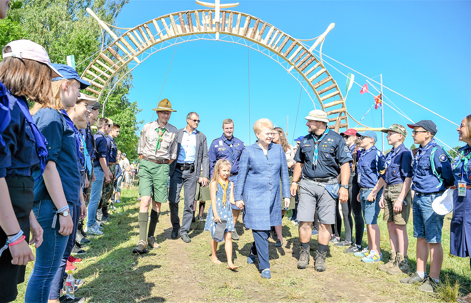 Skautams ji padovanojo valstybės vėliavą ir palinkėjo, kad skautų gretos tik didėtų, o jų veikla uždegtų kuo daugiau jaunų žmonių. Vėliau apžiūrėjo stovyklavietę, bendravo su skautais, kartu dalyvavo jų veiklose.