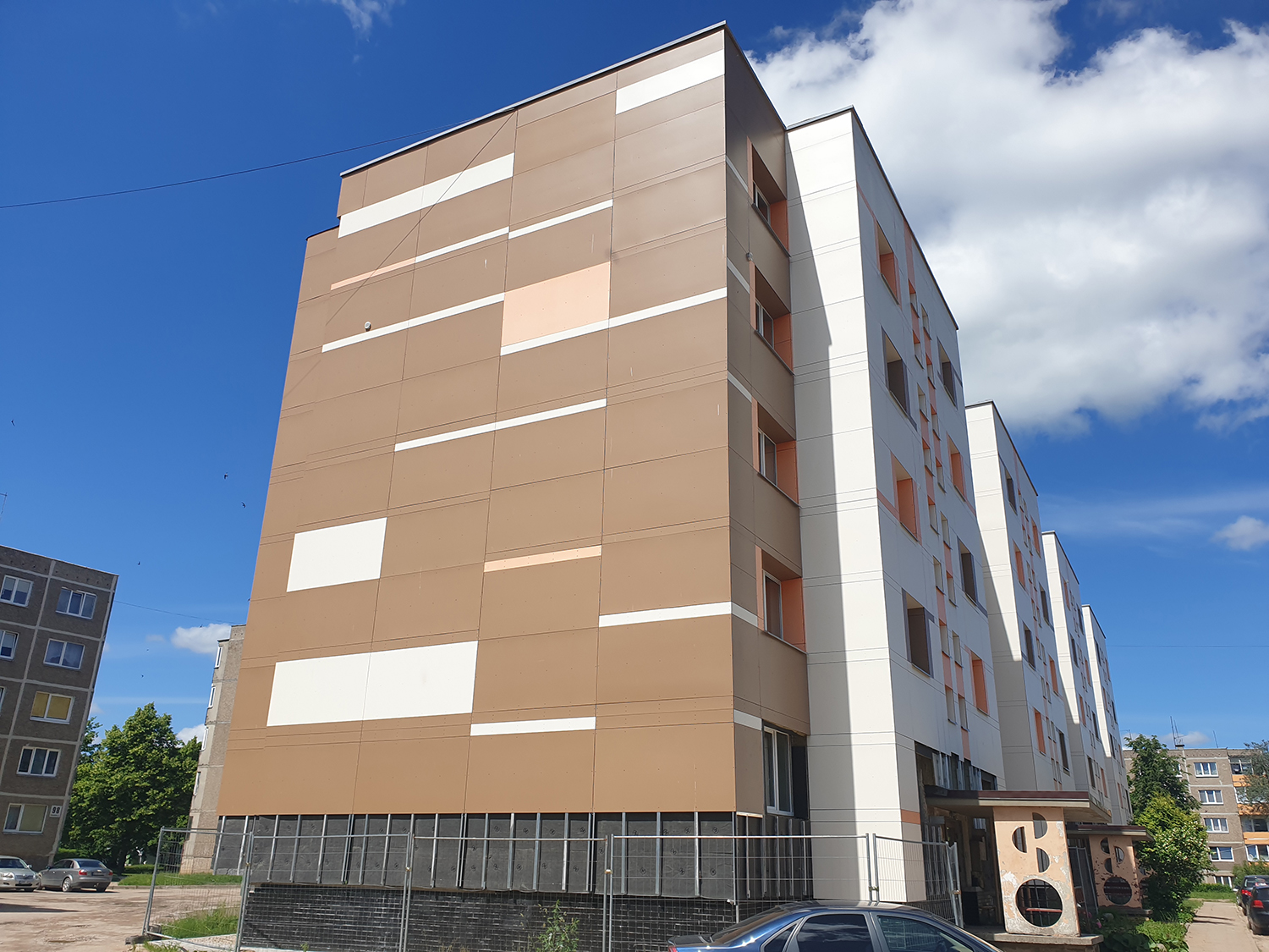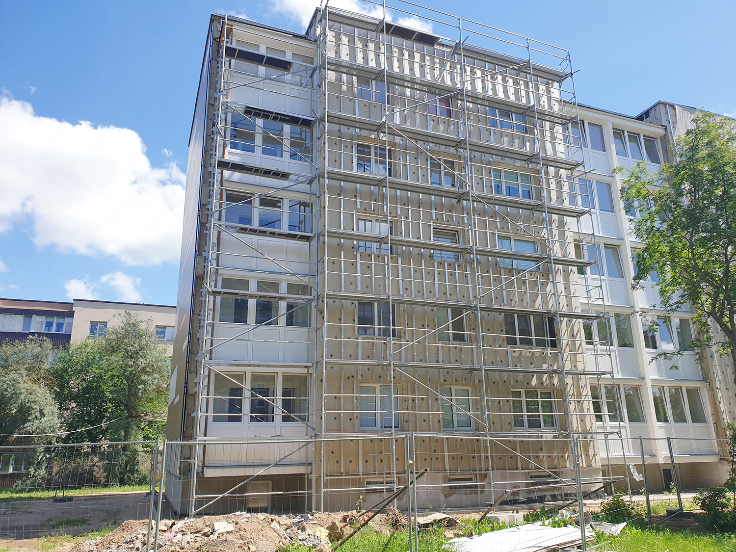 Be to, iš rangovo teko pareikalauti pakeisti išorinės apdailos plokštes, kadangi šis, vykdydamas darbus, panaudojo interjero plokštes (HPL), kurios eksterjerui netinkamos. Nepraėjus net keliems mėnesiams pradėjo blukti spalva, pastebėti kiti trūkumai.