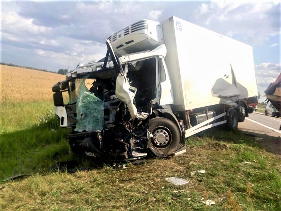 Ugniagesiams gelbėtojams teko vaduoti prispaustą vieno vilkiko vairuotoją, patyrusį atvirus kojų lūžius.