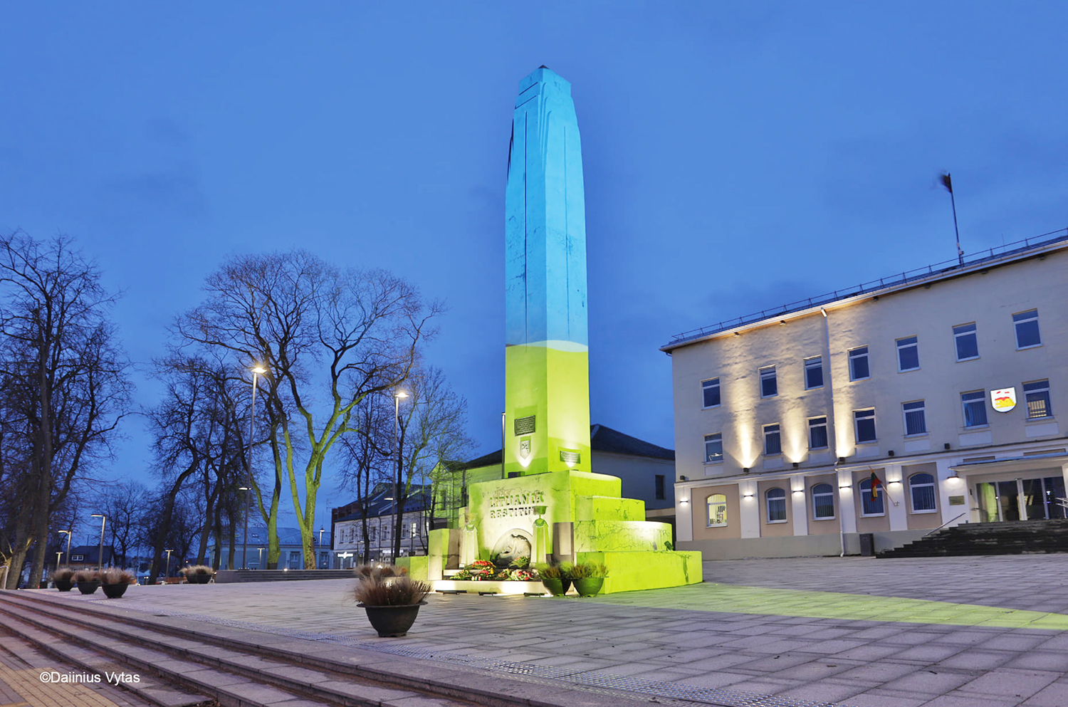 Kęstučio aikštėje, prie Laisvės paminklo susirinkę ukmergiškiai sugiedojo Lietuvos ir Ukrainos himnus, išklausė Ukmergės rajono mero Rolando Janicko kreipimąsi.