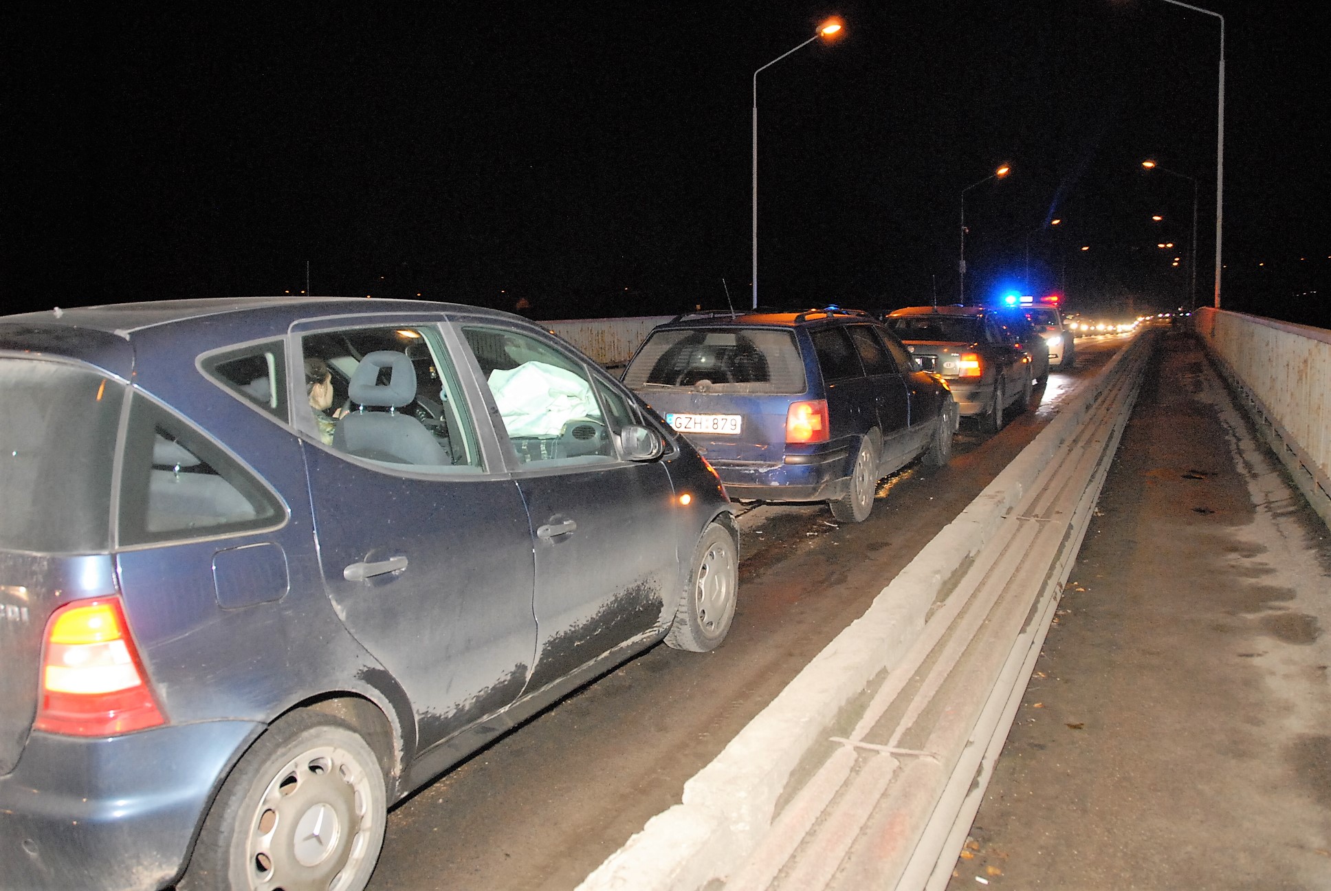 Beveik lygiai tuo pat metu Vilniaus gatvėje, ant tilto per Šventąją, susidūrė net keturios transporto priemonės. Įvykio metu niekas nenukentėjo, vairuotojai buvo blaivūs. Tačiau ši avarija „patampė“ nervus kitiems eismo dalyviams. Mat policijos ekipažo teko kiek palaukti ir Vilniaus gatvėje, iš abiejų tilto pusių, susidarė didžiulės automobilių eilės.