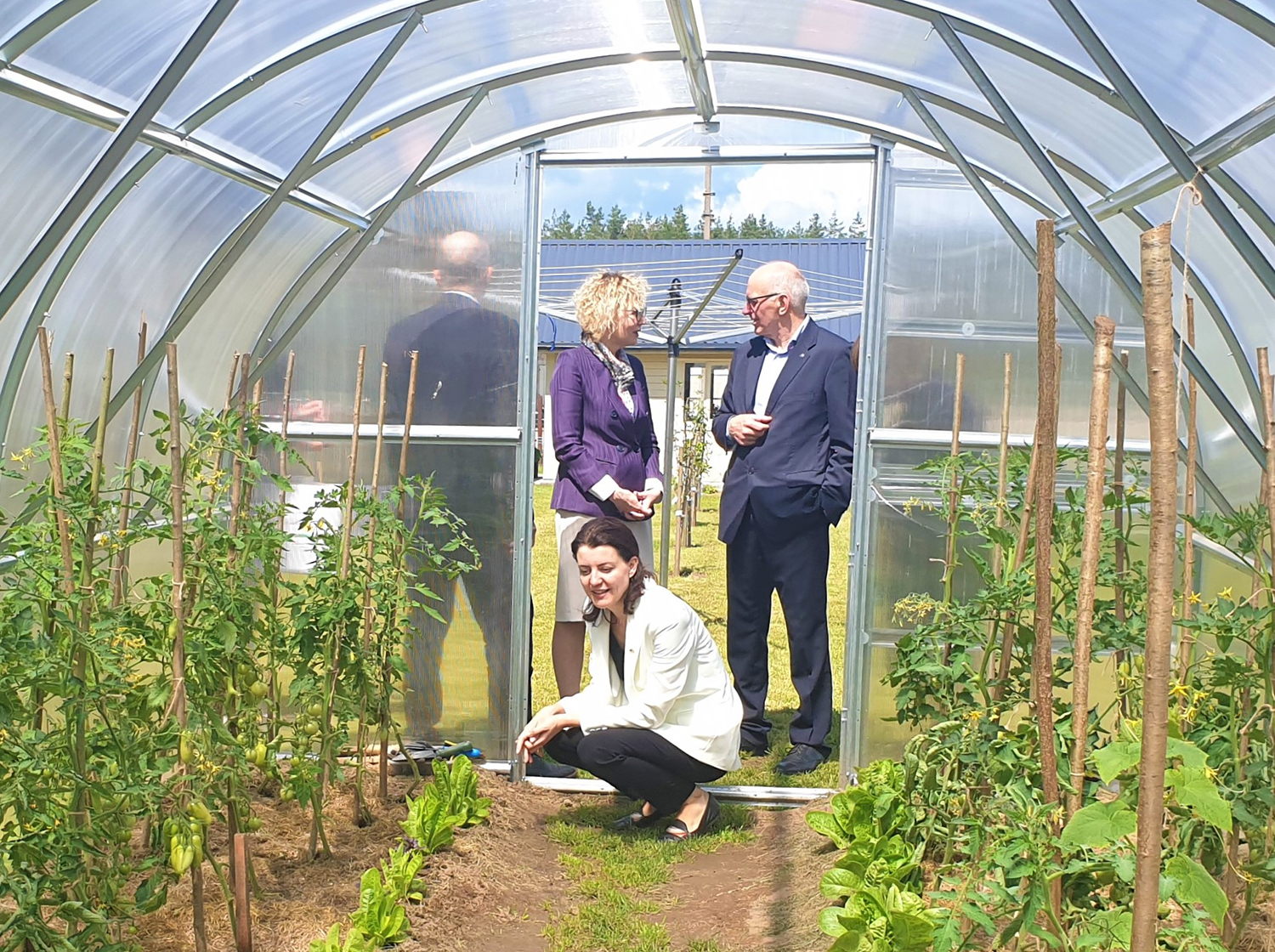 Grupinio gyvenimo namų šeimininkų su įkurtuvėmis pasveikinti atvyko Socialinės apsaugos ir darbo ministrė Monika Navickienė. Savo kalboje ji atkreipė dėmesį, kad bendruomenės sustiprėja, kai yra įvairios. „Visi esame vienodai galingi. Visuomenė keičiasi pamažu. Nors iš pradžių būna skeptikų, bet, priėmus į savo tarpą silpnesnius, padedant vieni kitiems, tampame stipresni“, – sakė ji.