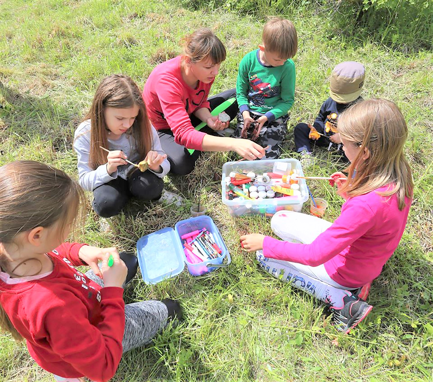 Po atokvėpio šeimos buvo įtrauktos į meno terapijos veiklas. Žygeiviai pakeliui turėjo susirasti po du akmenukus ir neštis juos visą kelią. Ant vienų akmenukų kiekvienas užrašė savo potyrius ir paliko juos Baraučiznoje, o kitus parnešė savo tėčiams. Mažesnieji akmenukus spalvino, margino ornamentais, tapė.